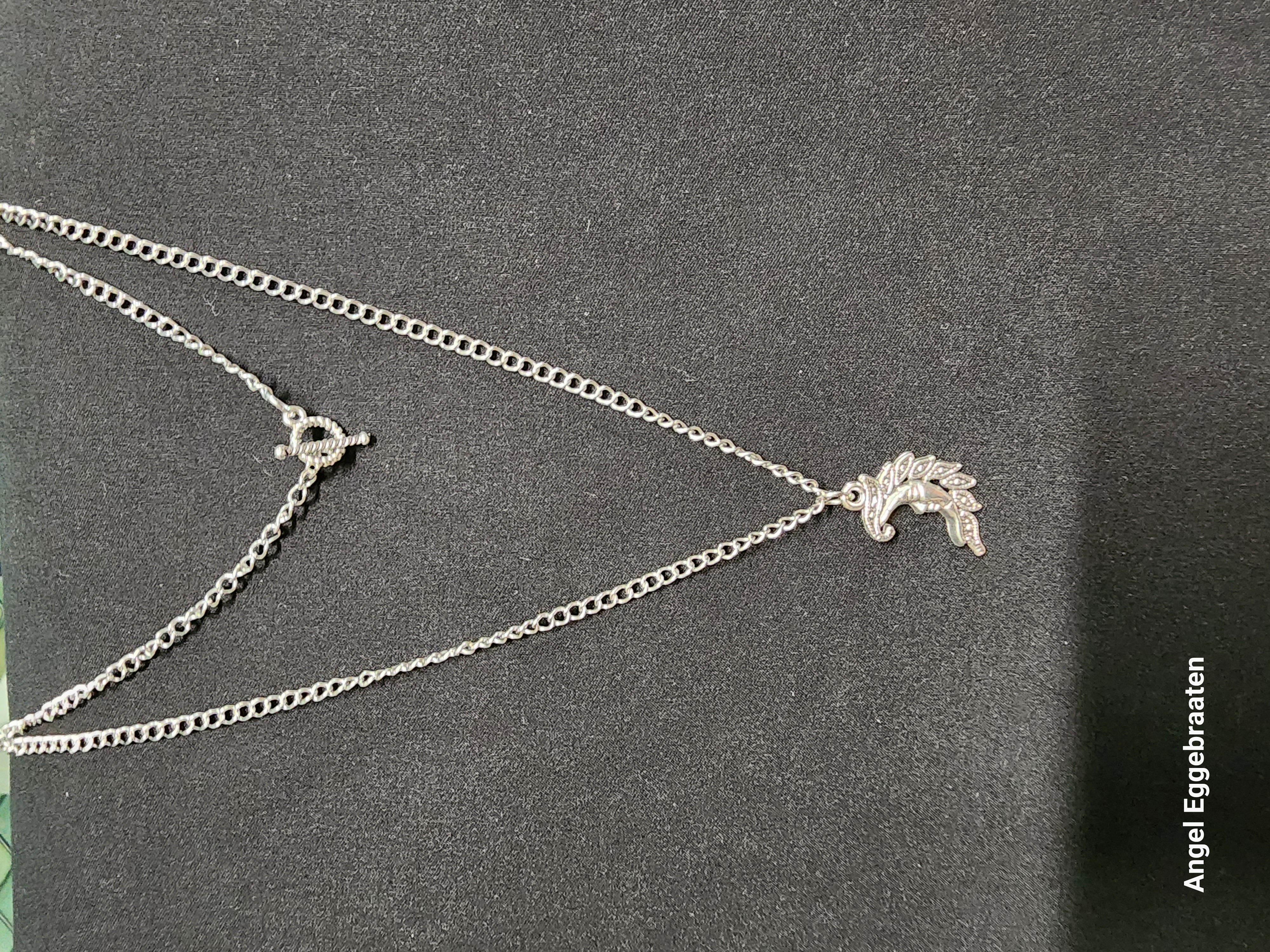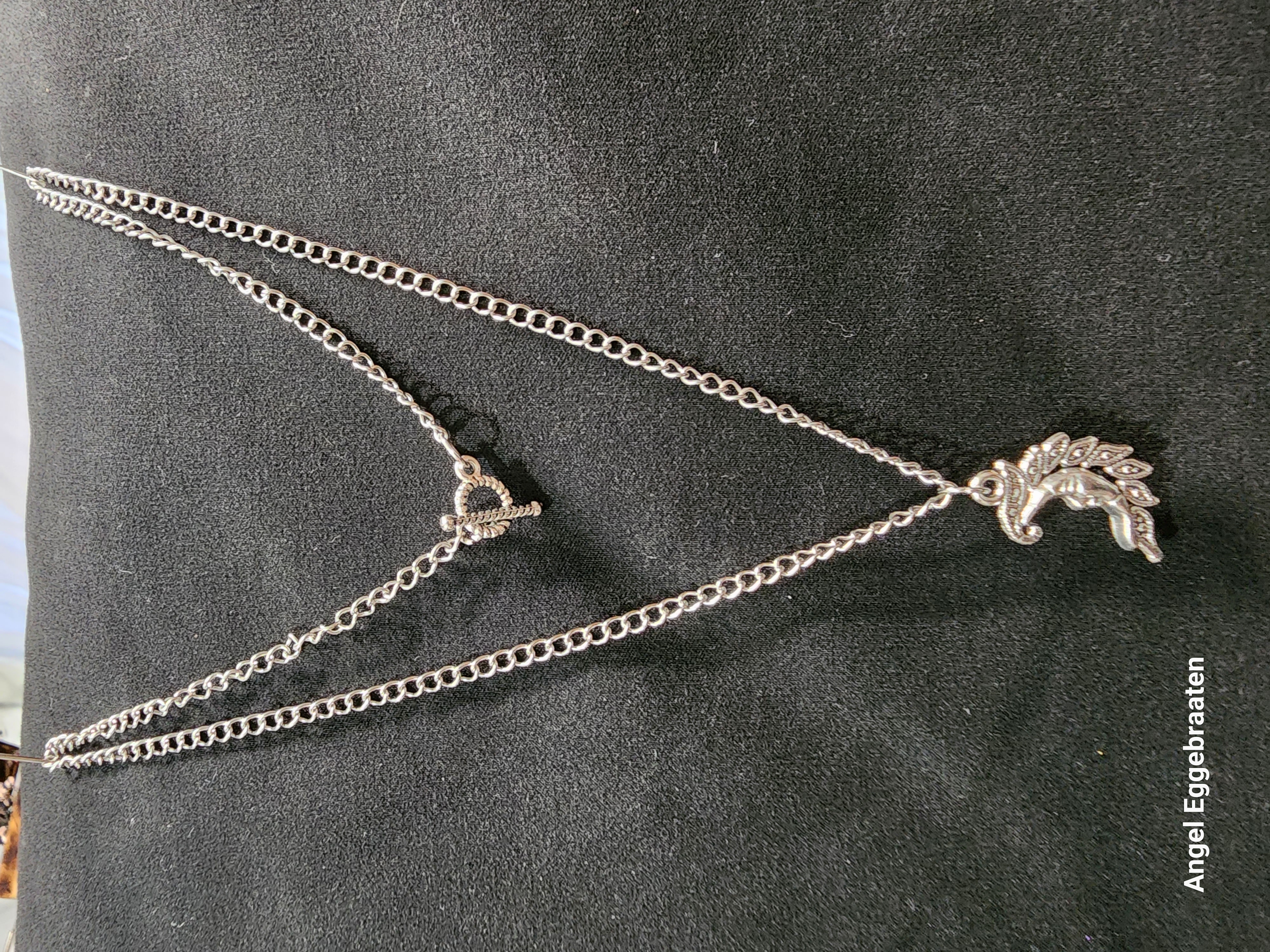 This Laurel Leaf Moon Pendulum/Pendant is a beautiful addition to any fashion accessories collection. Made with a stainless steel chain and featuring a unique swirl pattern toggle clasp, this pendant is both stylish and secure. The laurel leaf design adds an elegant touch to any outfit, making it perfect for both casual wear or dressing up for special occasions.